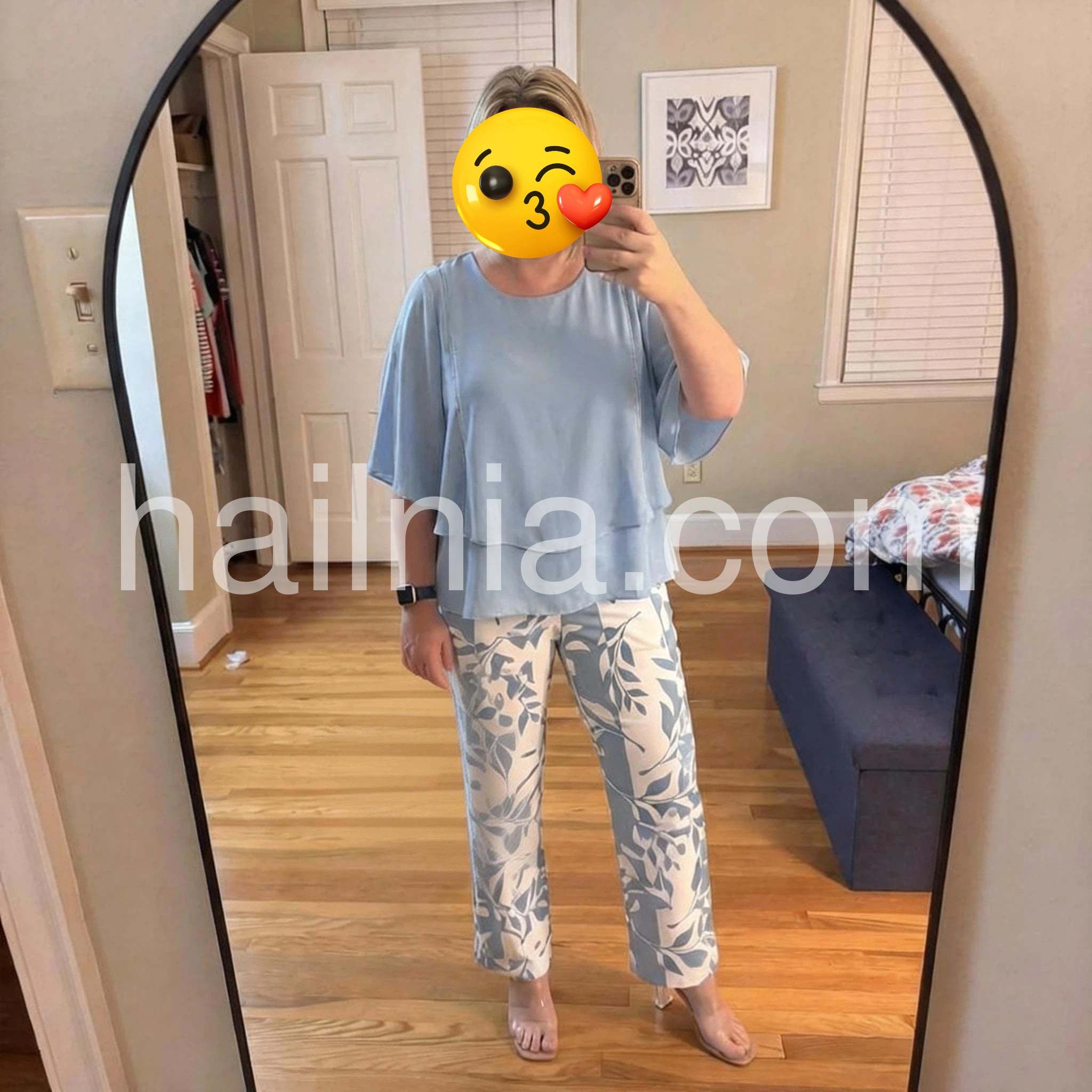 Yes!It runs true to the garment size chart please choose your size based on your measurements.This Blue 3/4 Sleeve Two Piece Set offers a versatile and stylish clothing option. With its flattering 3/4 length sleeves and two-piece design, it is perfect for any occasion. Made with quality materials, it provides comfort and durability. Elevate your wardrobe with this must-have set.