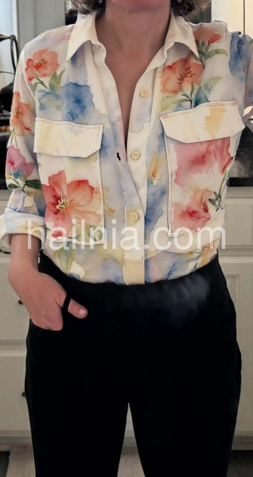Yes!It runs true to the garment size chart please choose your size based on your measurements.Elevate your summer wardrobe with this Romantic Watercolor Floral Button Up Shirt , a chic and artistic top that blends delicate floral artistry with timeless shirt styling. Crafted from lightweight, breathable fabric—likely cotton or rayon blend—this long-sleeve blouse features a soft watercolor-inspired print in gentle hues of blush pink, sky blue, and ivory, accented with green leaves for a fresh, garden-like feel. The classic collared design and front button closure offer a polished look, while the two chest pockets add functional flair and visual interest. Rolled sleeves give it a relaxed, effortless vibe perfect for warm days. Paired here with a shimmering sequin skirt and gold accessories, it effortlessly transitions from daytime elegance to evening glamour. Ideal for brunch dates, seaside strolls, or casual outings with a touch of sophistication, this floral shirt brings romance, color, and modern charm to any ensemble. Let its dreamy pattern and versatile style become a staple of your seasonal look.