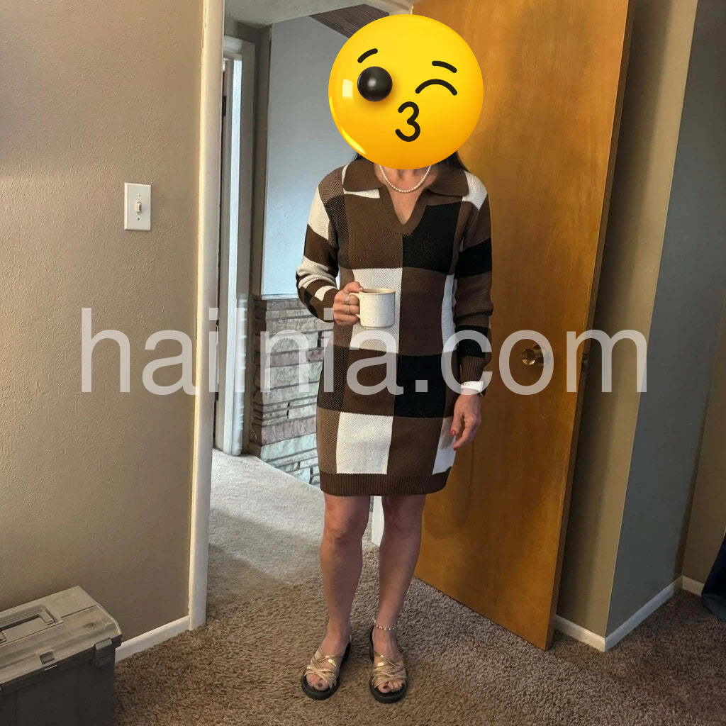 Yes!It runs true to the garment size chart please choose your size based on your measurements.Introducing our Brown V-Neck Long Sleeve Mini Dress. Made from high-quality materials, it's designed to provide both style and comfort. Perfect for any occasion, this dress features a flattering v-neckline and long sleeves for a chic and elegant look. Upgrade your wardrobe with this versatile piece!