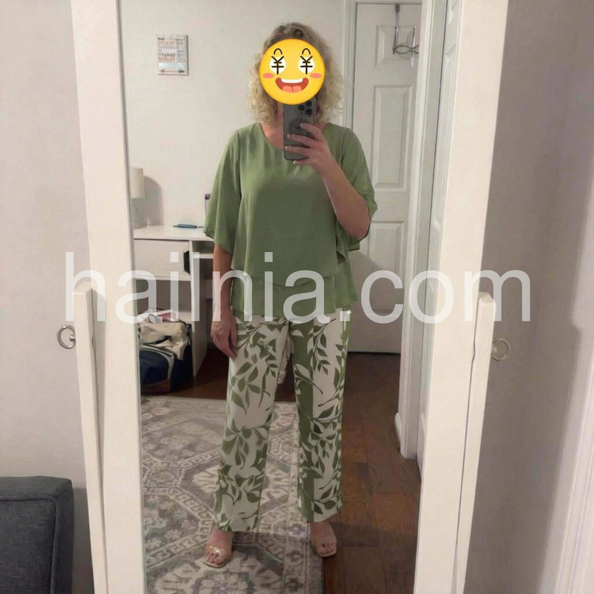 Trendy Green Print 3/4 Sleeve Two Piece Set